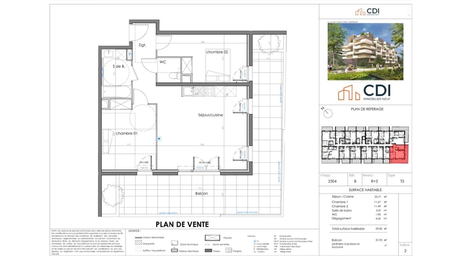 Montpellier (34000)CDI NEUF vous présente ce superbe T3 à vendre de 91m² de surface totale avec balcon au sein d'un programme neuf au cœur de l'agglomération montpelliéraine !