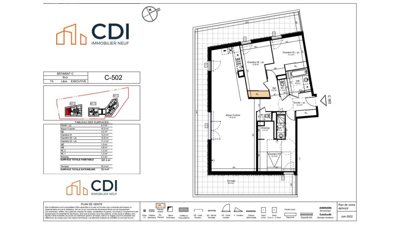 Montpellier (34000)CDI NEUF vous présente ce T4 en VEFA d'environ 100m² au 5ème étage d'un programme neuf au cœur de l'agglomération montpelliéraine !