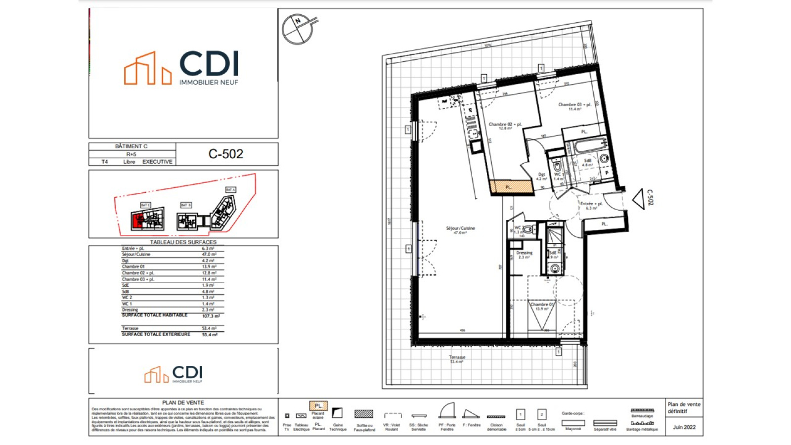 Montpellier (34000)CDI NEUF vous présente ce T4 en VEFA de 107m² au 5 ème étage d'un programme neuf au cœur de l'agglomération montpelliéraine !