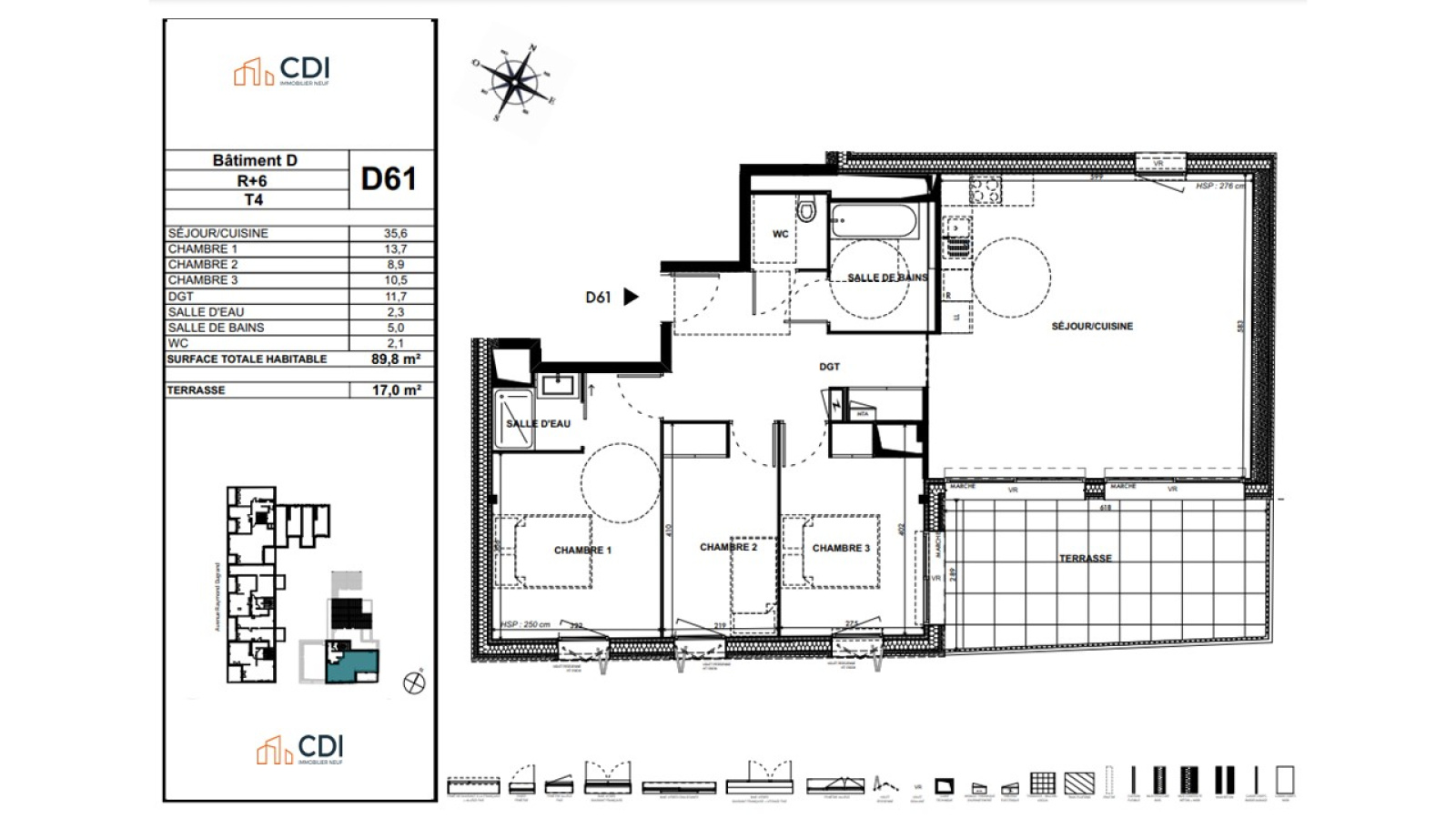Montpellier (34000)CDI NEUF vous présente ce T4 de 106.8m² de surface totale privative au 6 ème étage d'un programme neuf au cœur de la ZAC de Port Marianne à Montpellier.