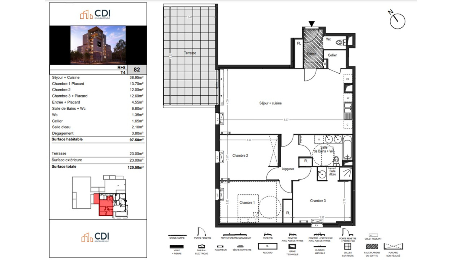 CDI NEUF vous présente ce T4 de 120m² de surface totale privative au 8 ème étage d'un programme neuf au cœur du quartier Croix d'Argent à Montpellier.
