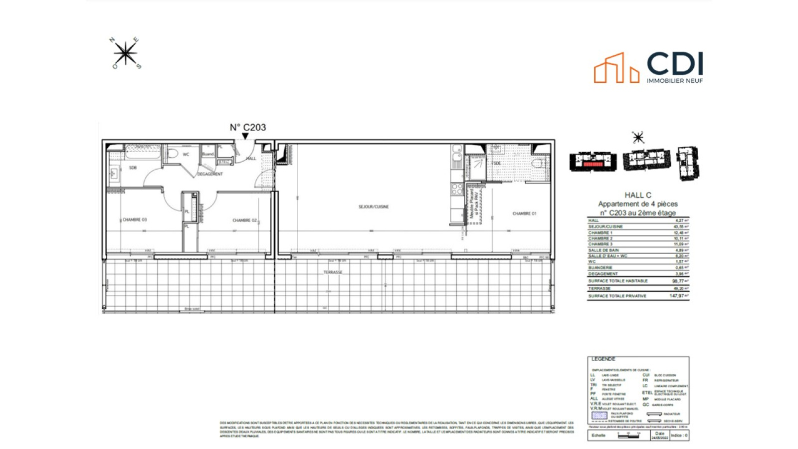 Lattes (34970)CDI NEUF vous présente ce superbe T4 de 147m² de surface totale privatiive à Lattes, avec sa grande terasse.